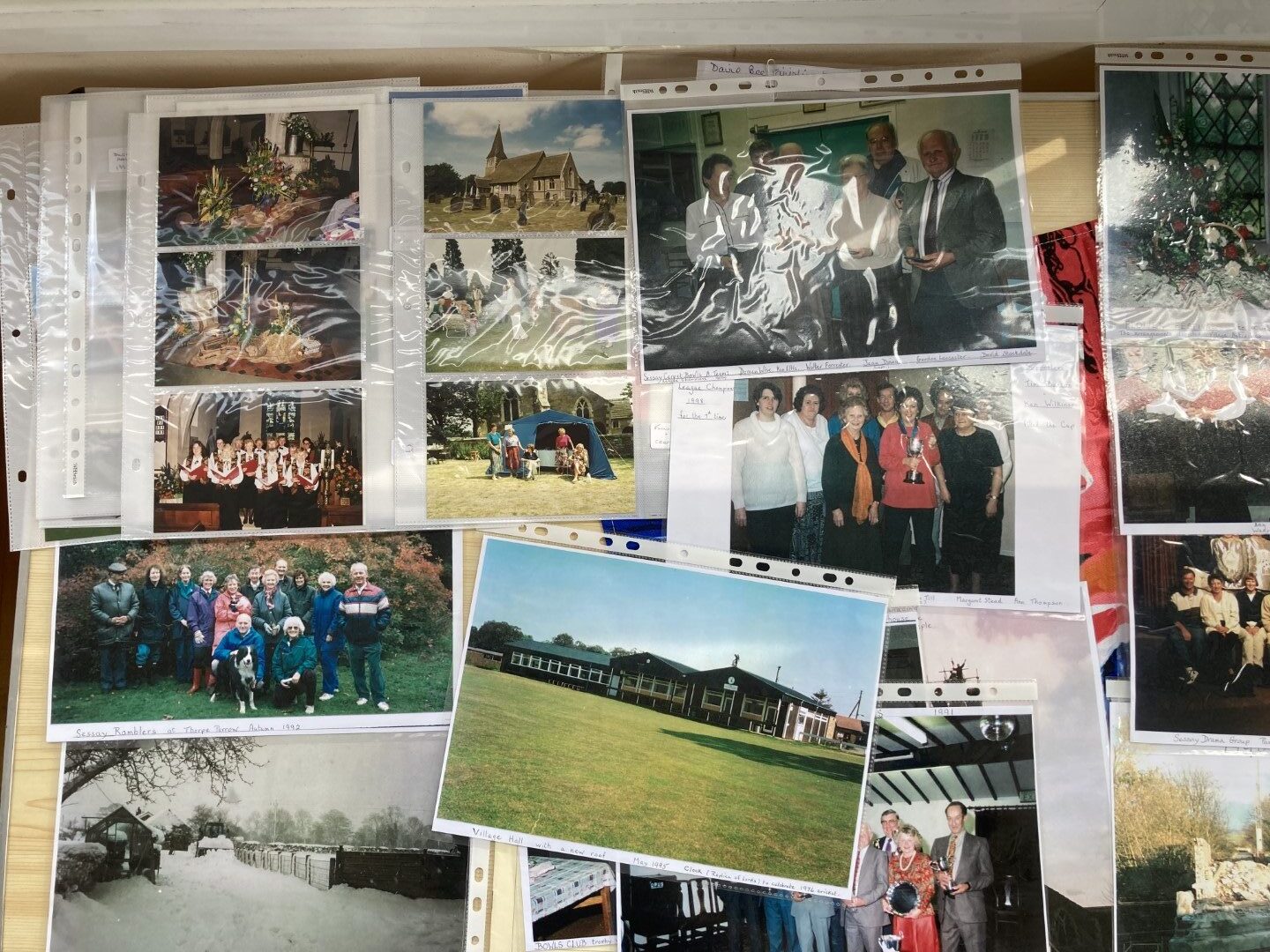 The exhibition covers the last seven decades of life in Sessay. There are school photos from Sessay School for most years. A number of photo albums showing the extensive range of WI interests and achievements are displayed. Also featured is the success Sessay Cricket club. There are pictures of villagers with celebrities and even Margaret with the Queen. Other pictures range from combined harvesters to ceremonial tree planting taking in new school buildings, arial photographs and epic floods! There’s other royalty too.