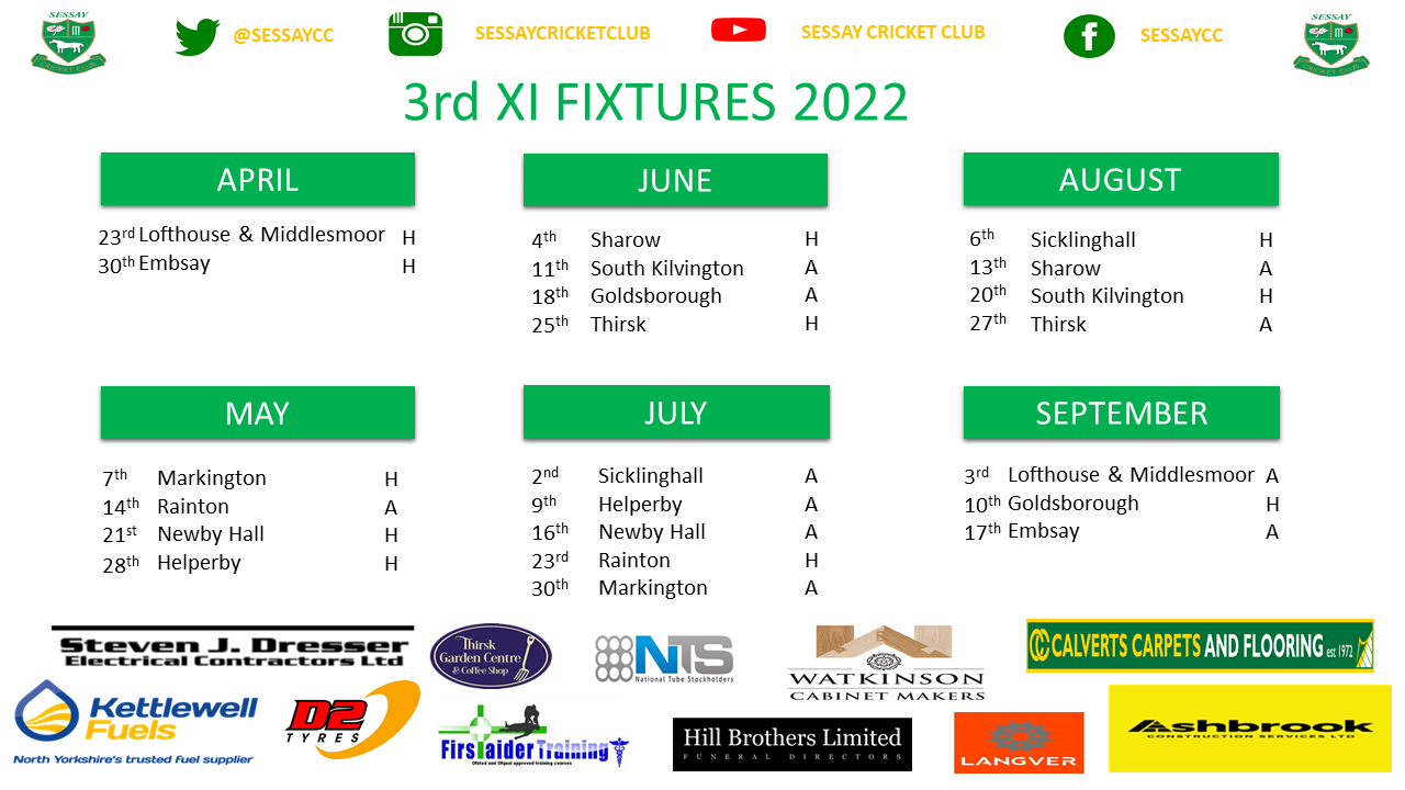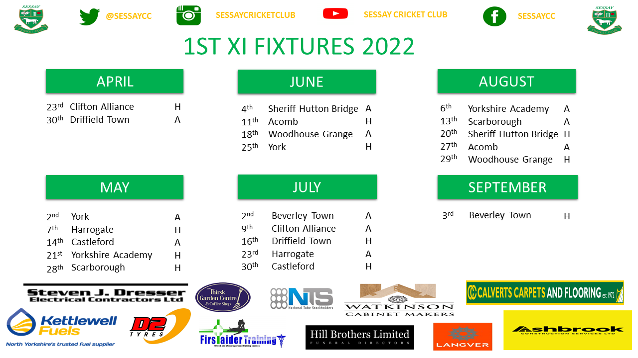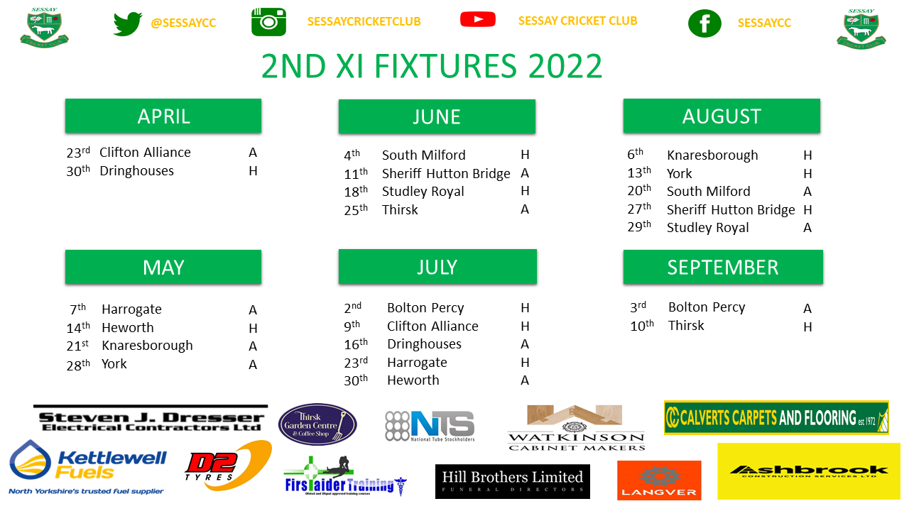 Follow Sessay Cricket Club on Social Media – Twitter @sessaycc, Instagram @sessaycricketclub, Facebook @sessaycc.